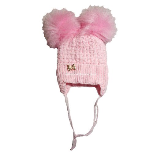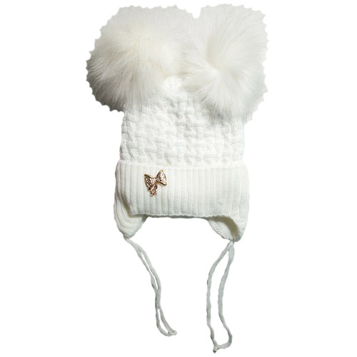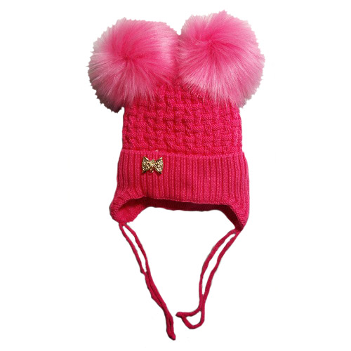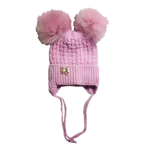 Шапка на девочку (Велсофт) с двумя помпонами